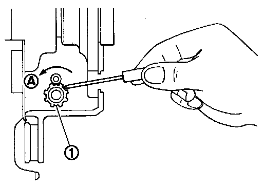 4.Remove the adjusting hole plug from the disc rotor. Turn the adjuster (1) in the direction (A) as shown in the figure using a suitable tool until the disc rotor is locked.