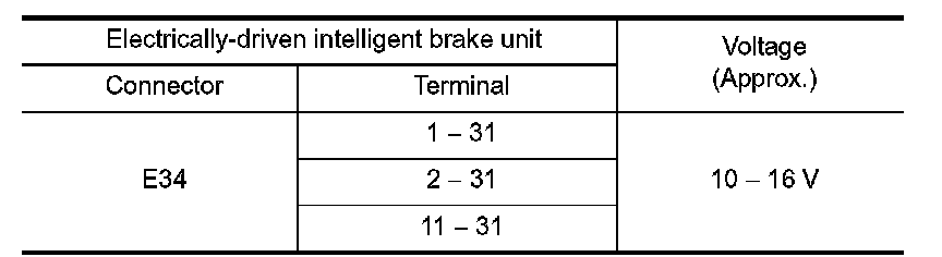 6.Check the voltage between the electrically-driven intelligent brake unit harness connector terminals.