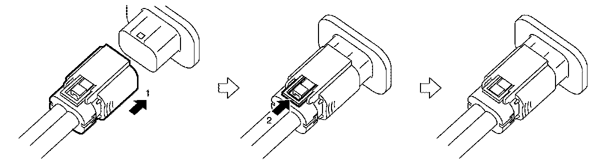 - Follow the procedure below and connect the 3-step type high voltage harness connector.
