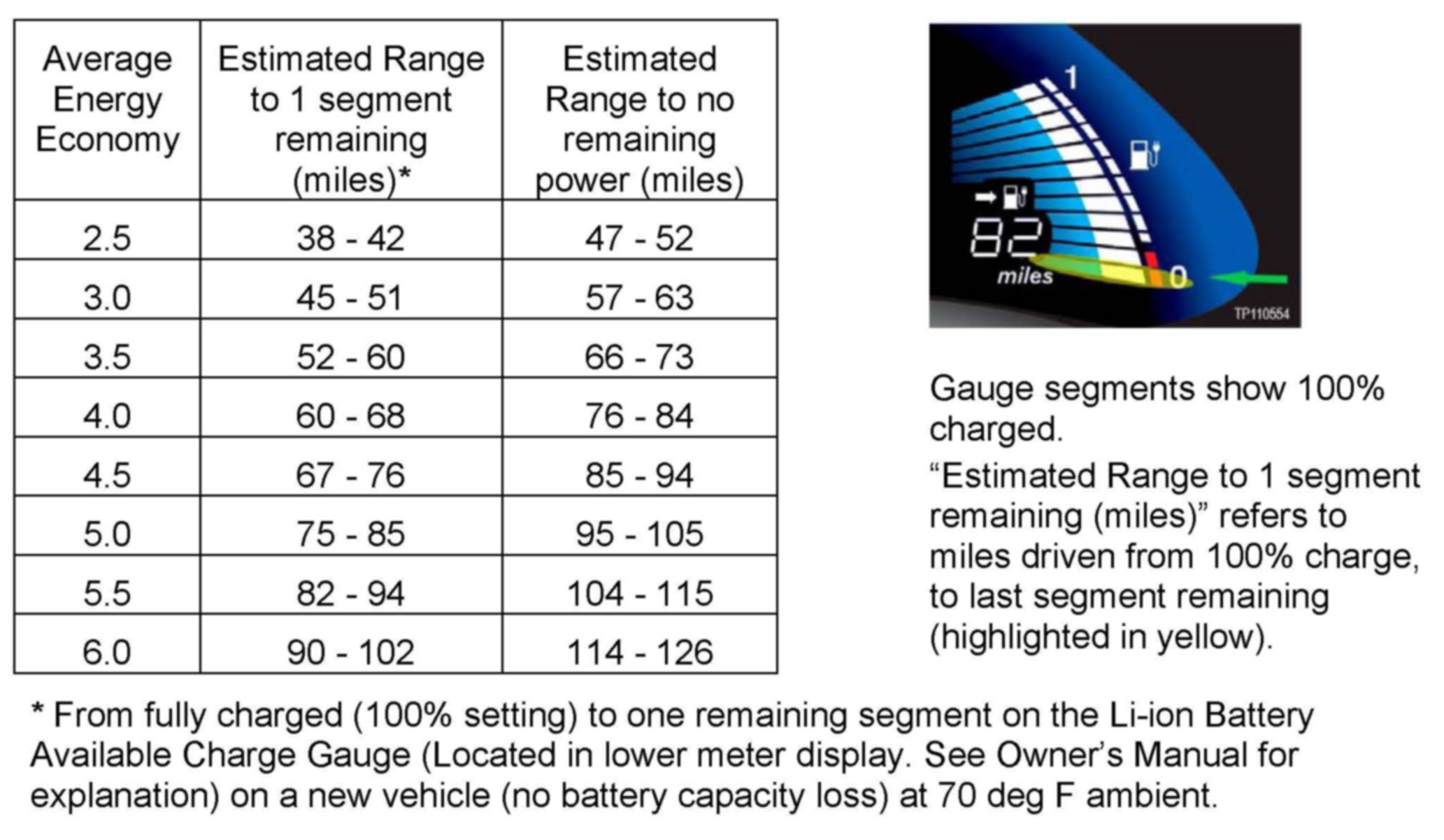 b. To improve range, customers should monitor Average Energy Economy and modify driving behavior to increase this number (Refer to the "Power Economy" section of owners manual, page 5-19).The following behaviors have the biggest impact on improving Average Energy Economy and range: