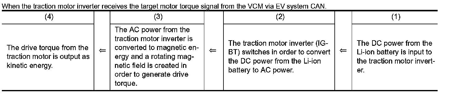 When the traction motor inverter receives the target motor torque signal from the VCM via EV system CAN.