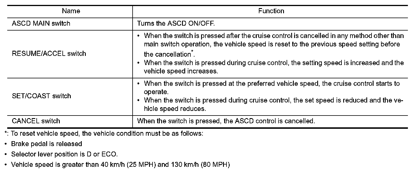 AUTOMATIC SPEED CONTROL DEVICE (ASCD) : Switch Name and Function