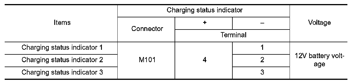 3.Check the voltage between charging status indicator harness connector terminals.