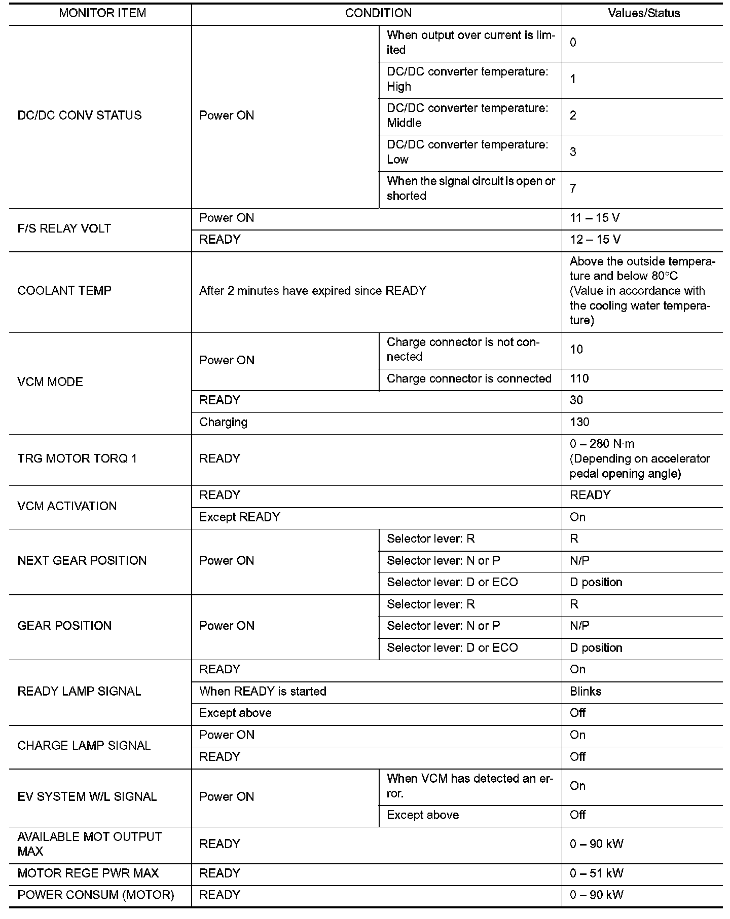 VCM, based on signals transmitted from VCM-related sensors to VCM.
