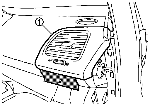 4.Remove fixing screw (A) from side ventilator grille RH (1).