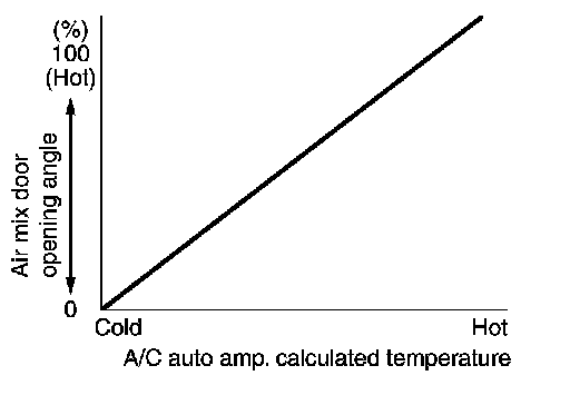 - A/C auto amp. calculates the target air mix door opening angle according to set temperature, in-vehicle temperature, ambient temperature, and sunload.