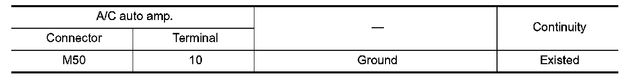 2.Check continuity between A/C auto amp. harness connector and ground.