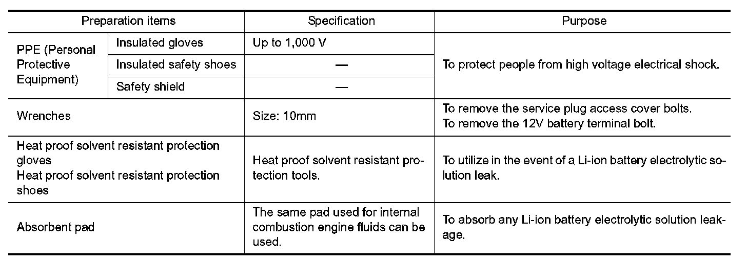 -When contact with high voltage components or high voltage harnesses is unavoidable, or when there is risk of such contact, be sure to wear appropriate PPE.