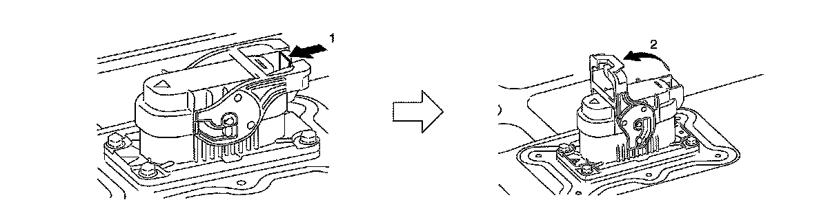 3.Remove the service plug by pressing the locking tab (1) and rotating the handle (2) upward. Using the handle, pull the service plug completely out of its socket.