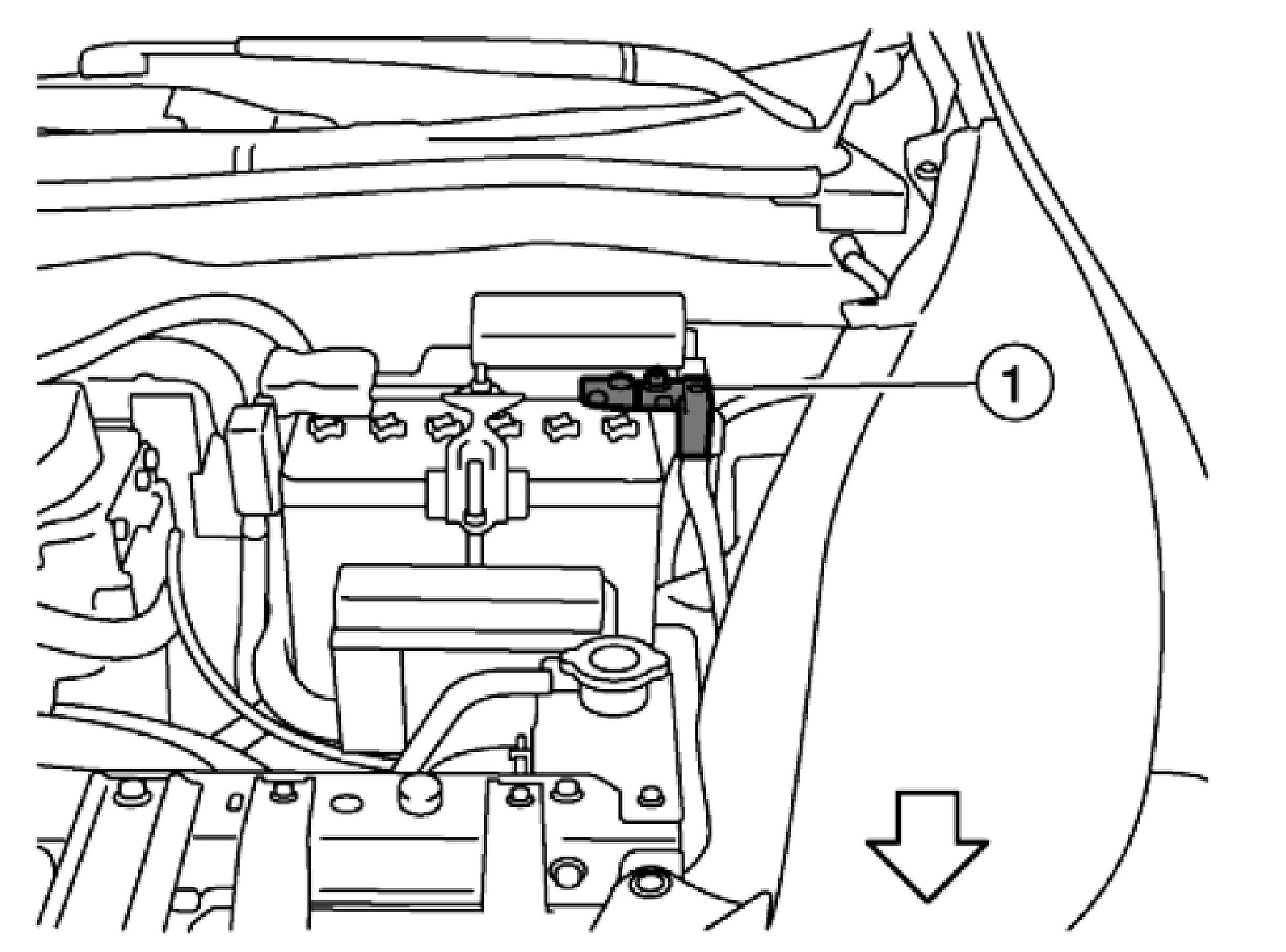5. Disconnect the negative (-) 12V battery cable (1). Insulate the negative (-) battery cable terminal with insulated tape.