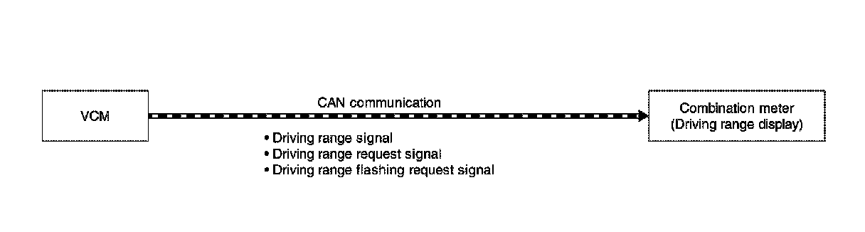 - Based on the signals received via CAN communication from VCM, the combination meter displays the driving range on the driving range display (1).