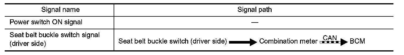 1.BCM requires warning chime output to combination meter when it judges seat belt warning chime is necessary from signals below.