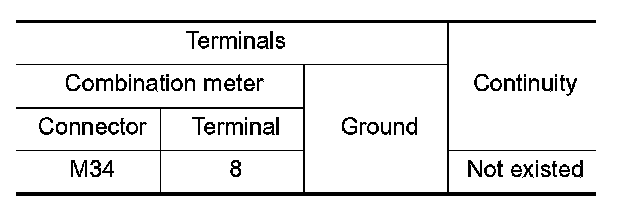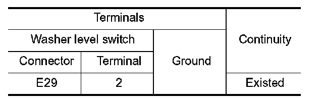 3.Check continuity between combination meter harness connector and washer level switch harness connector.
