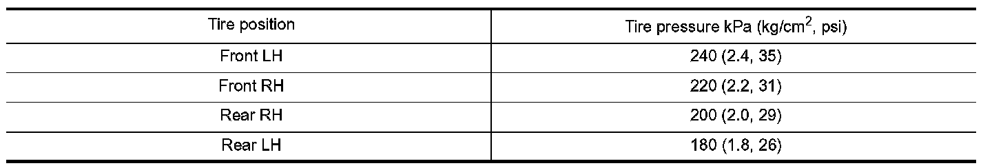 4.Adjust the tire pressures for all wheels to the specified value. [1][2]Specifications.