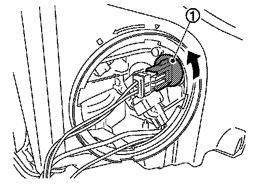2.Rotate parking lamp bulb socket (1) counterclockwise and unlock it.