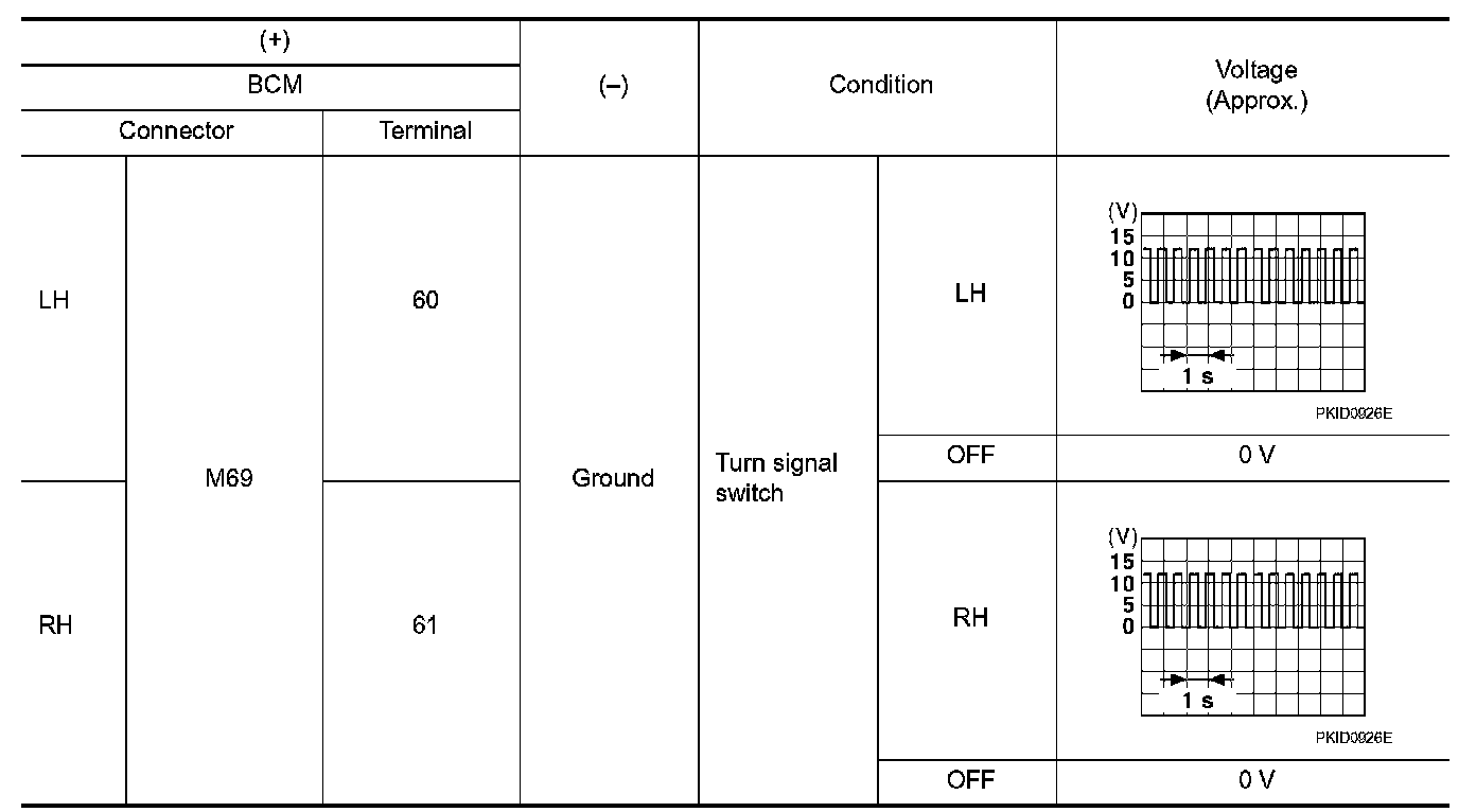 4.With operating the turn signal switch, check voltage between BCM harness connector and ground.