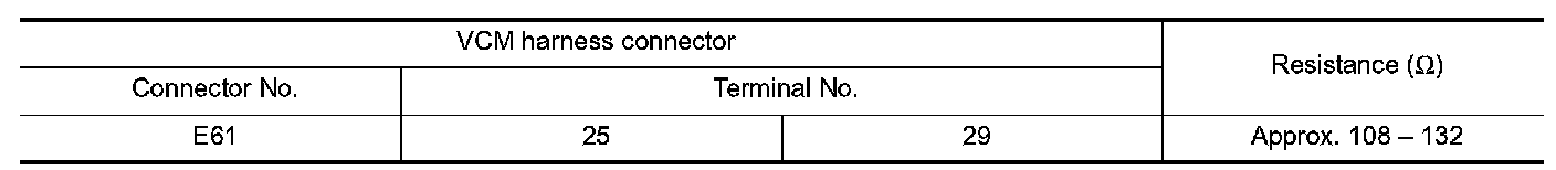 2.Check the resistance between the VCM harness connector terminals.