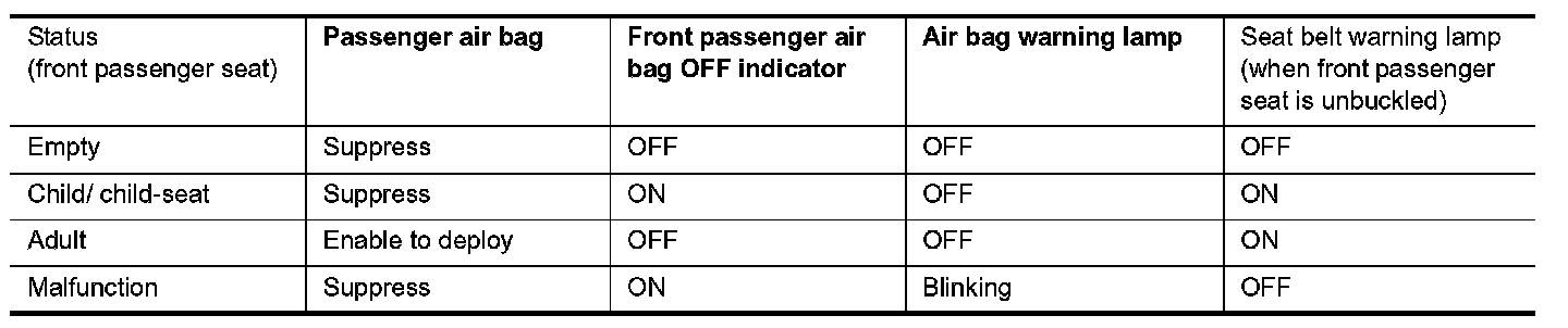 - Turns on front passenger air bag OFF indicator when passenger seat is occupied by child-seat and child.