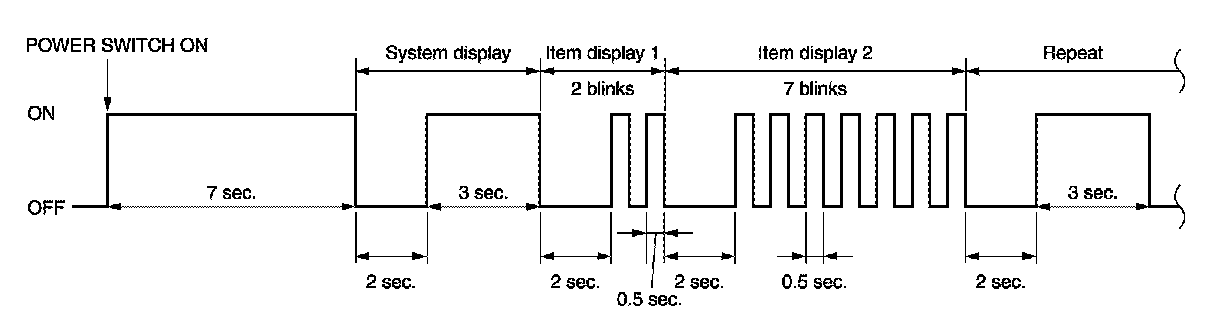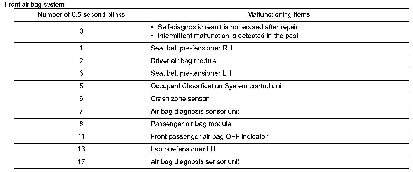 - Front air bag system: 3 second blink followed by a 0.5 second blink repeated.