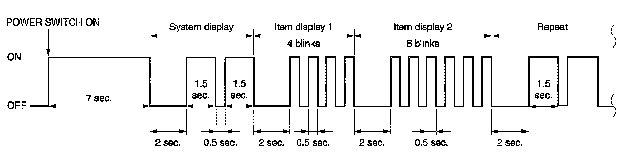 - Side air bag system: Two 1.5 second blinks followed by a 0.5 second blink repeated.
