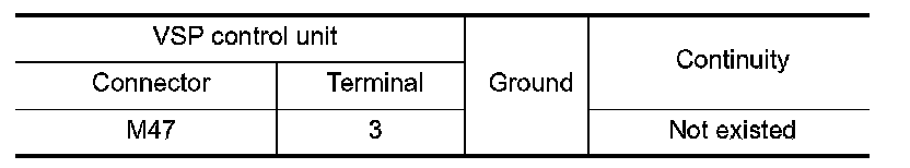 3.Check continuity between VSP control unit harness connector and power switch harness connector.