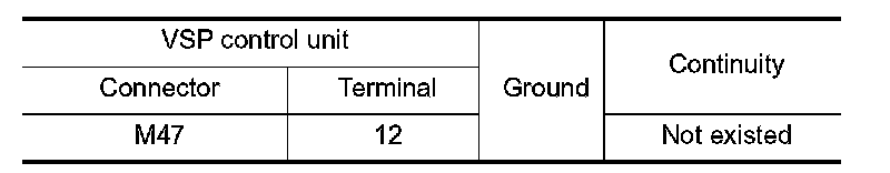 3.Check continuity between VSP control unit harness connector and stop lamp switch harness connector.