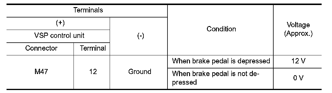 The Stop lamp switch outputs the stop lamp switch signal to the VSP control unit.