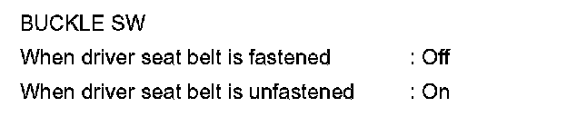 1. CHECK SEAT BELT BUCKLE SWITCH (DRIVER SIDE)
