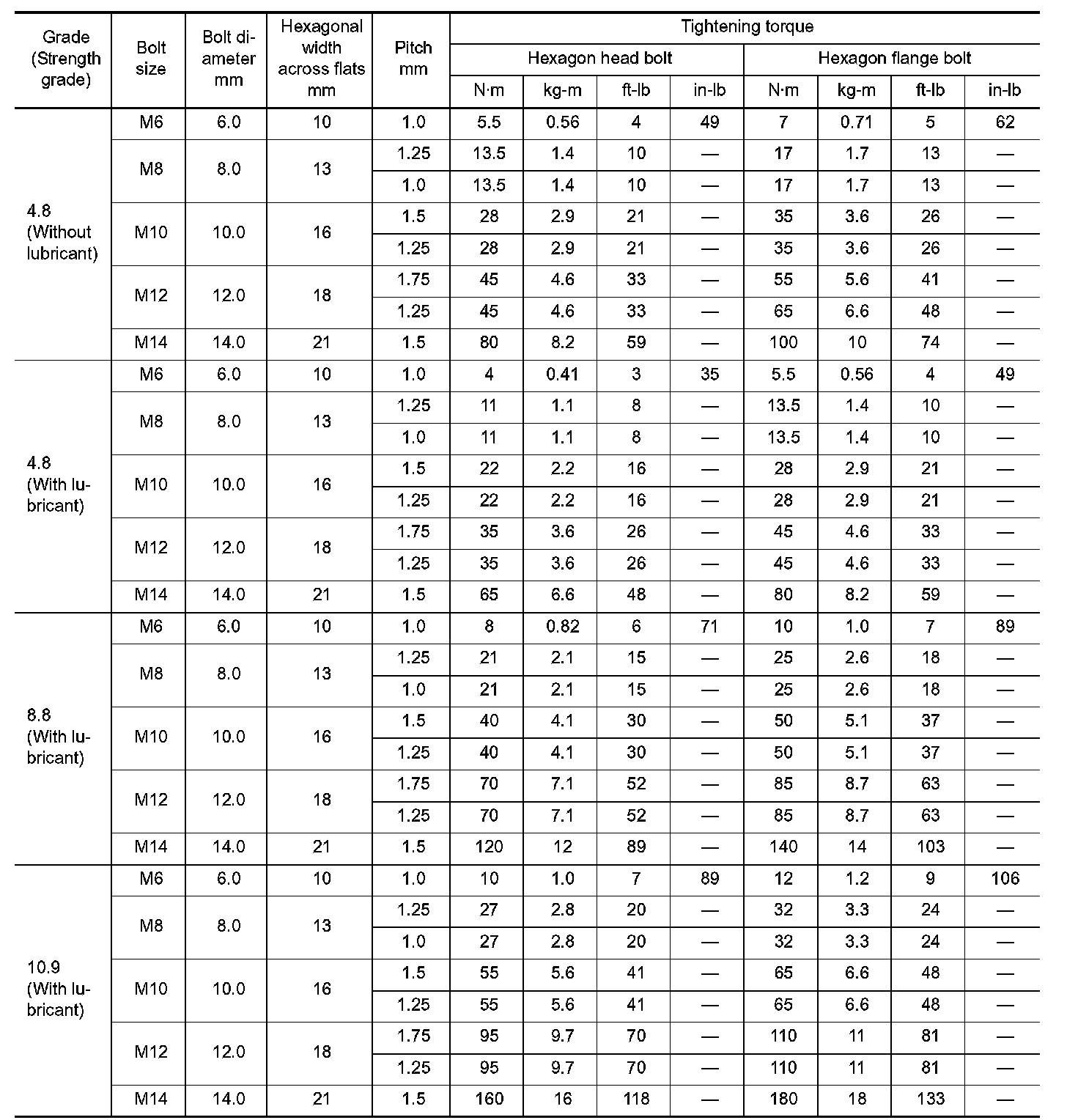 1.Use tightening torque with lubricant for the new standard bolts/nuts in principle. Friction coefficient stabilizer is applied to the new standard bolts/nuts.