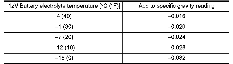 2.Use the chart below to correct your hydrometer reading according to electrolyte temperature.
