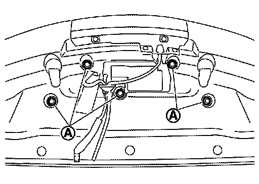 1.Remove rear spoiler. Refer to "Removal and Installation" Removal And Installation.