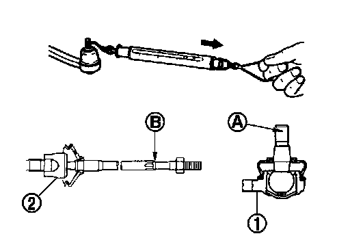 Make sure that the spring balance reads the specified value when ball stud and inner socket start to move. Replace outer socket or steering gear assembly (inner socket) if they are outside the standard.