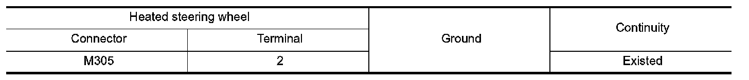 Check continuity between heated steering wheel harness connector terminal and ground.