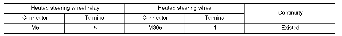 4.Check continuity between heated steering wheel relay harness connector terminal and heated steering wheel harness connector terminal.