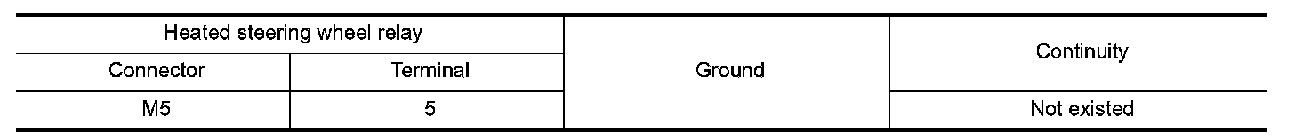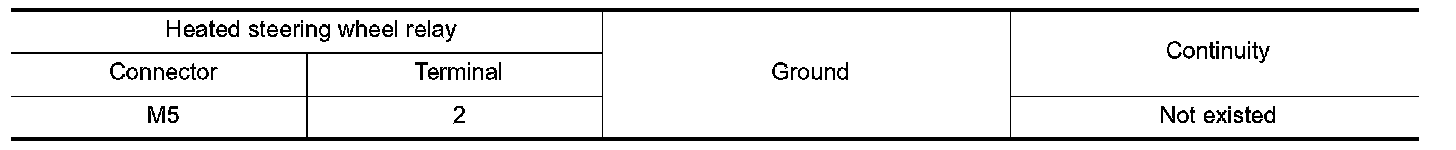 2.Check continuity between heated steering wheel relay harness connector terminal and ground.