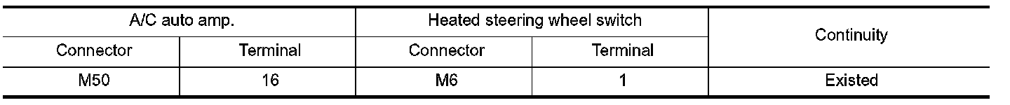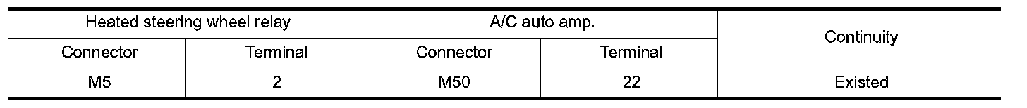 1.Check continuity between heated steering wheel relay harness connector terminal and A/C auto amp.