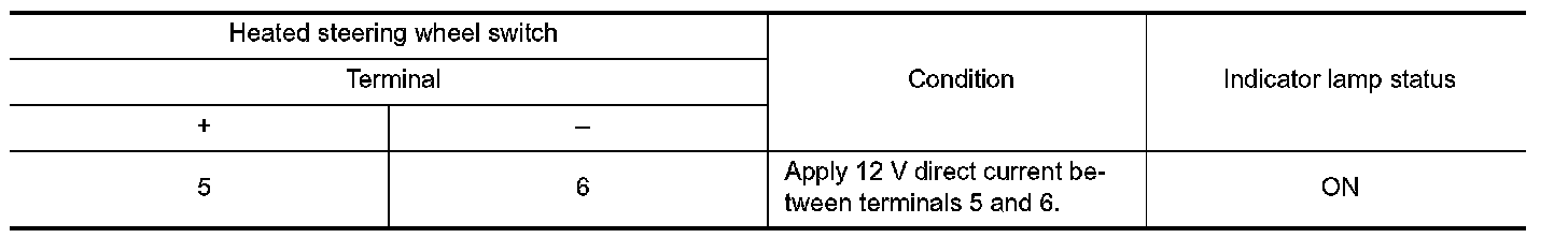 Apply a voltage of 12V between the heated steering wheel switch connector terminals to check that the indicator lamp turns ON.