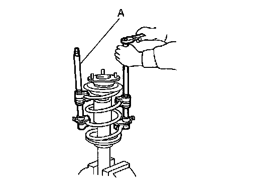 3.Using a spring compressor (A) (commercial service tool), compress coil spring between spring upper seat and lower seat (strut assembly) until coil spring with a spring compressor is free.