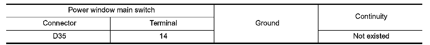 2.Check continuity between power window main switch harness connector and front power window motor (driver side) harness connector.