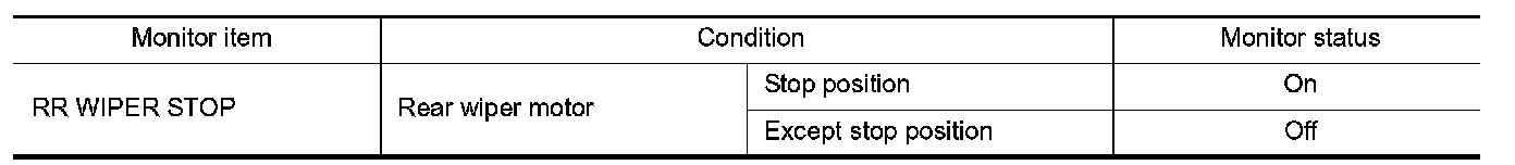 3.Check that "RR WIPER STOP" changes to "On" and "Off" linked with the wiper operation.