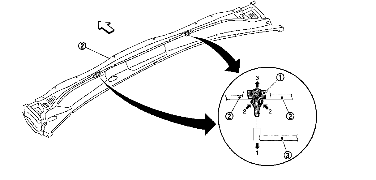 a.Remove cowl top cover (2). Refer to "Removal and Installation" Removal And Installation.