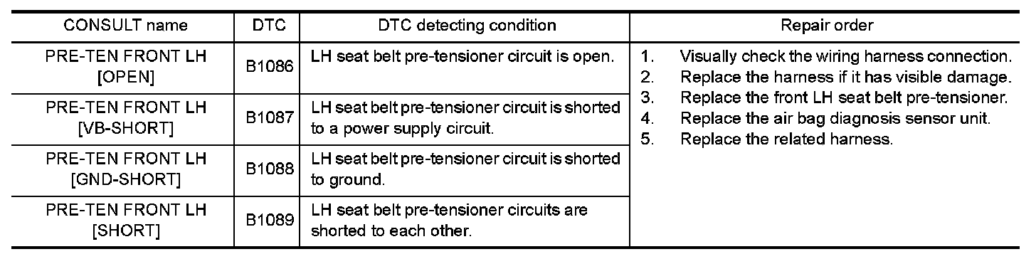 DTC B1086 - B1089 SEAT BELT PRE-TENSIONER LH