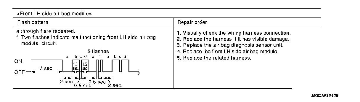 SRS system is now in diagnostic mode and AIR BAG warning lamp flashes. Trouble Diagnosis Without CONSULT.