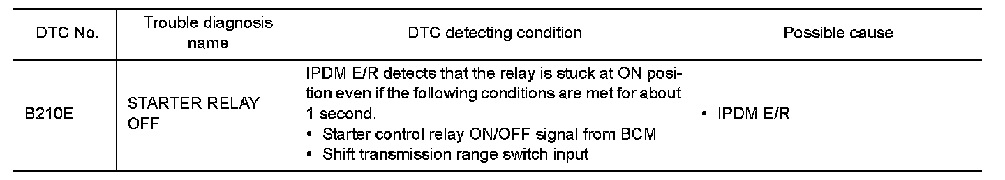 Located in IPDM E/R, it runs the starter motor. The starter relay is turned ON by the BCM when the ignition switch is in START position. IPDM E/R transmits the starter relay ON signal to BCM via CAN communication.