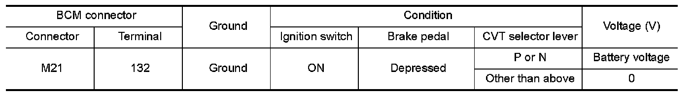 1.Turn ignition switch ON under the following conditions and wait for at least 1 second.