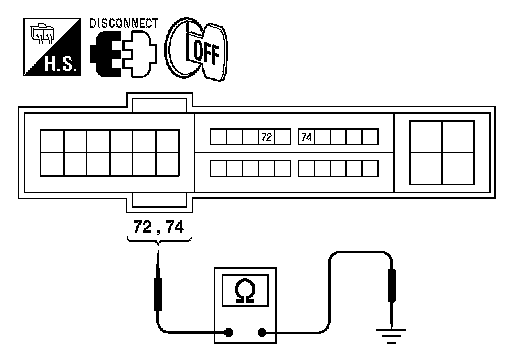 2.Check continuity between IPDM E/R harness connector terminals 72 and 74.