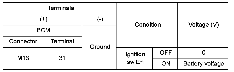 1.Turn ignition switch ON under the following conditions, and wait for at least 2 seconds.