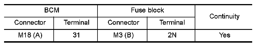 3.Check continuity between BCM harness connector and fuse block harness connector.