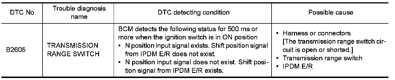 - If DTC B2605 is displayed with DTC U1010, first perform the trouble diagnosis for DTC U1010. Refer to
