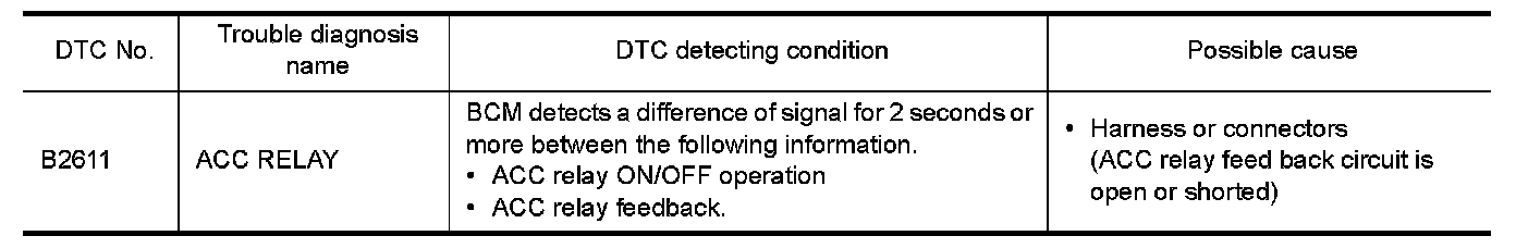 BCM check ACC relay ON request for consistency with the actual ACC relay operation status.